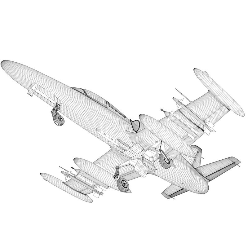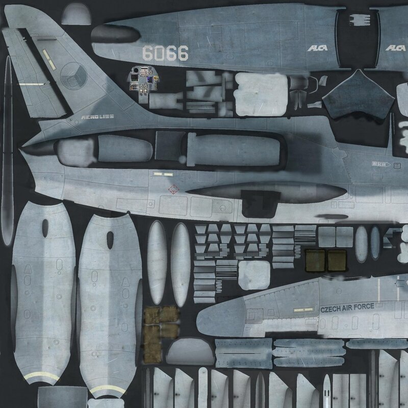 3D model of czech fighter airplane L-159 Alca with 4K textures in jpg. Contains 77 single polymeshes. Movable parts have pivots correctly placed.