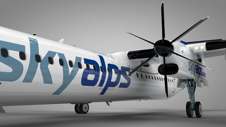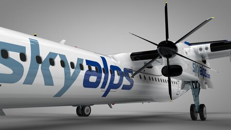 SkyAlps Bombardier DHC-8 Q400 Dash 8 L1537 is ready to be animated. You can easily position it the way you need or animate.