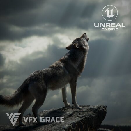 Groom Fur: A complex fur system was created in Blender, and the wolf's fur styling has been perfectly replicated using UE's Groom technology, with finely tuned materials.
