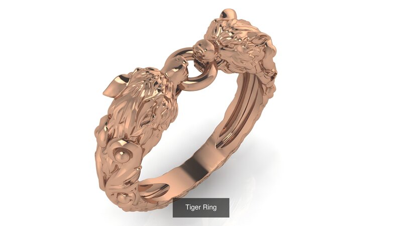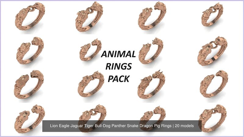 Lion Eagle Jaguar Tiger Bull-Dog Panther Snake Dragon Pig Rings 3D Model Collection