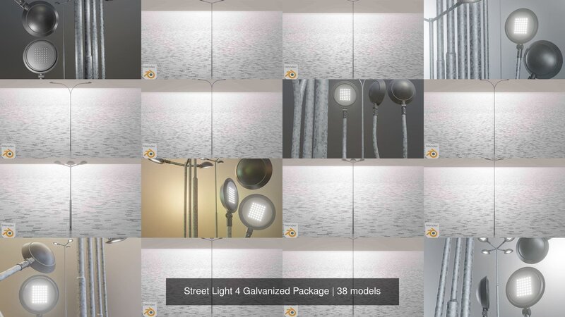 Street Light 4 Galvanized Package 3D Model Collection