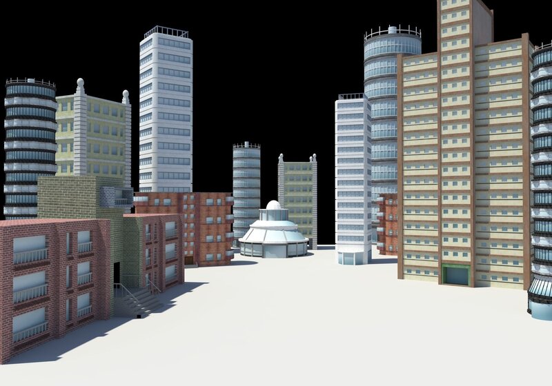 8 fully textured and unique buildings which could be duplicated and scaled to create a full city scene.