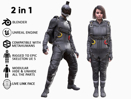 “Mens and Womens Skydiving Uniforms - Modular - Rigged 3D Model Collection”