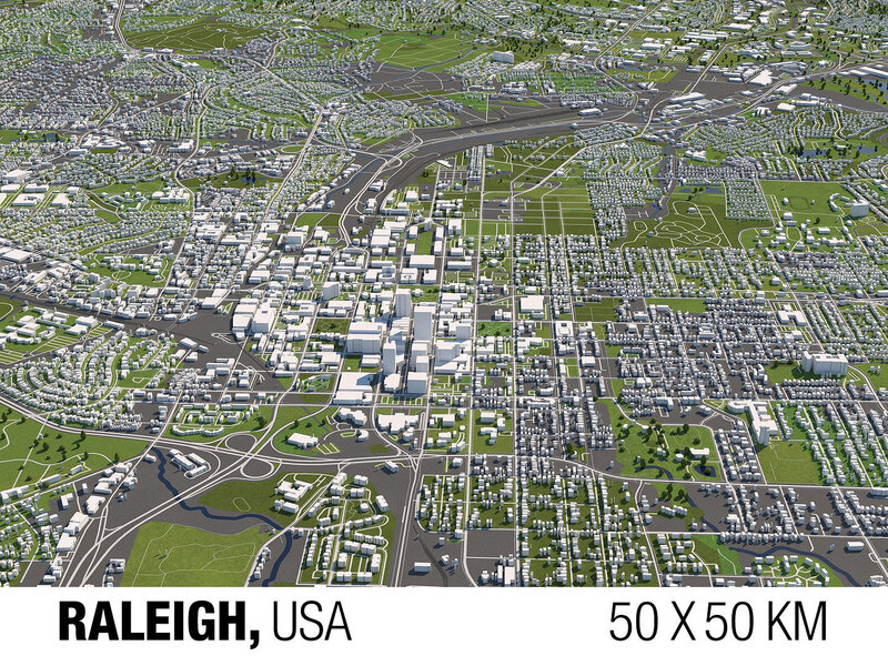 Raleigh 50x50km 3D City Map 3D model