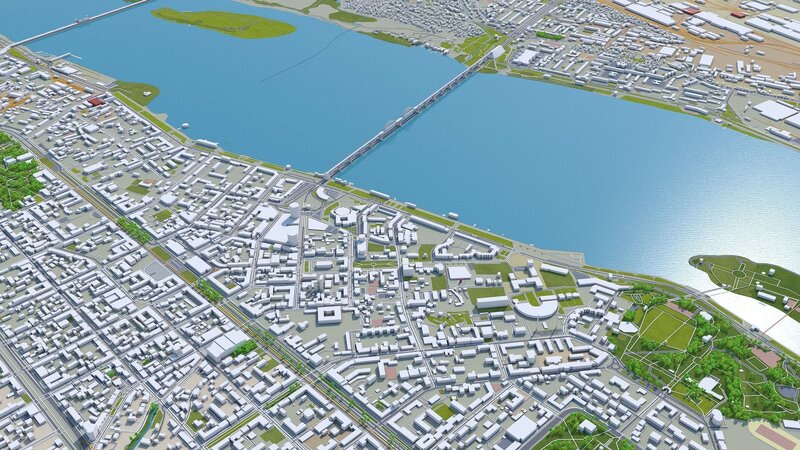 Dnipro City in Ukraine 60km Low-poly 3D model