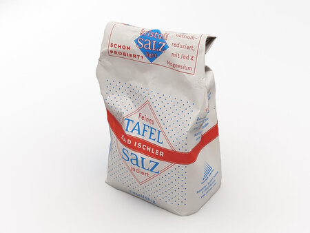 A DETAILED 3D MODEL OF A BAG OF SALT: