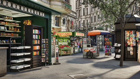 Archmodels for UE vol. 9 collection includes highly detailed 3d models for real-time architectural visualizations. This collection comes with 96 high quality street models like signs, litter bins, kiosks, press stands, advertising posts, railings and building elements, bus stops and much more. You can use them to enrich your scenes. All assets have textures and materials. Assets are optimized to use in Unreal Engine 5 and they are ready to use in your visualizations.