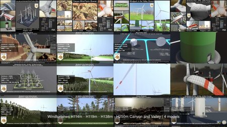 Windturbines H114m - H119m - H138m - H250m Canyon and Valley 3D Model Collection