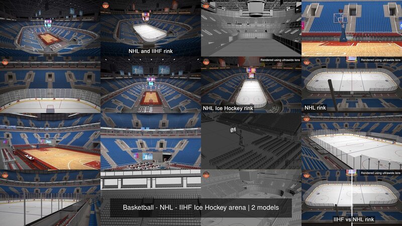 Basketball - NHL - IIHF Ice Hockey arena 3D Model Collection