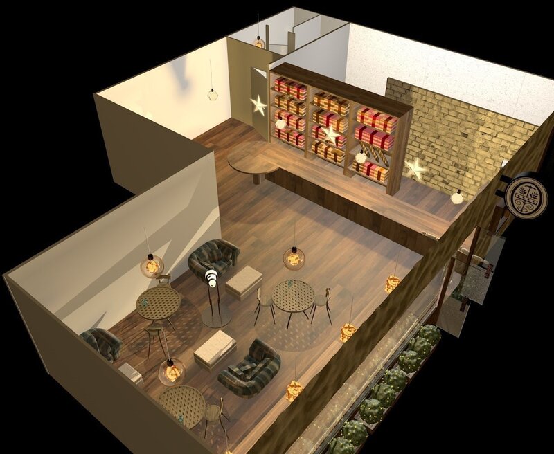 small coffee shop with kitchen streamline designed restroom 3D model