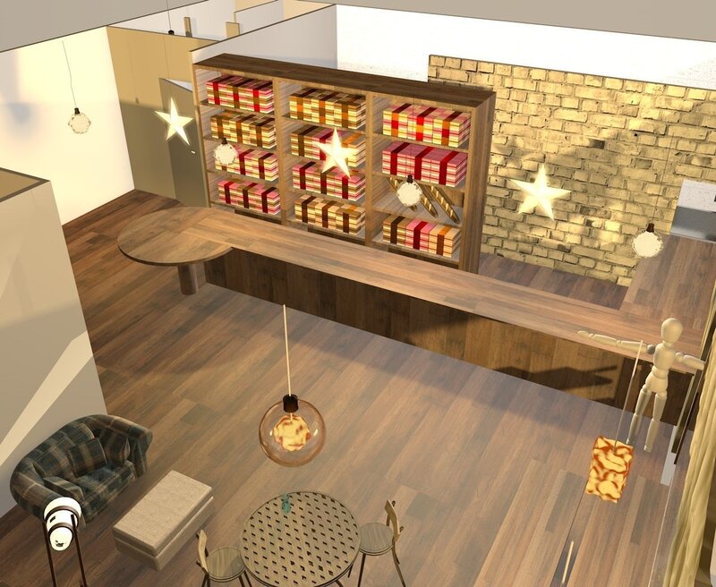 This bakery/cafe model gives a warm wood feeling and detailed design.